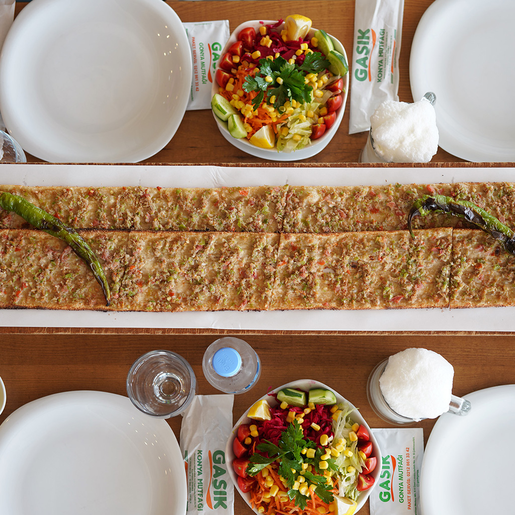 Bamya çorbası, Konyalı’ların düğün çorbası imiş… Lezzeti çok iyiydi.. Etli ekmeği incecik hamuruyla onu da beğendim. Lahmacunun ince hamurlusu gibi düşünülebilir.. Benim favorim , tirit kebabı oldu bu mekanda.. Lezzeti beni mest etti.. Sacarasi tatlısı, ince hamur içi Antep fıstığı şerbetli.. hafif ve lezzetliydi.. Tekrar gidilecekler arasında mekan..